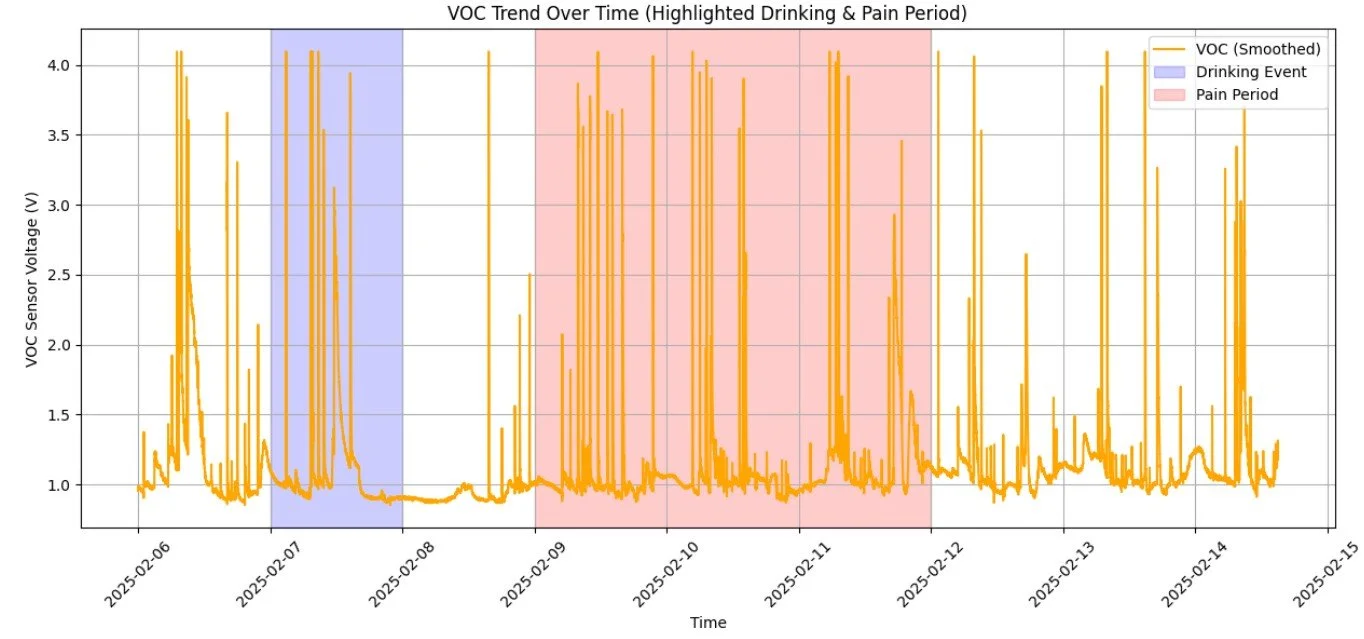 That’s the question we set out to answer with our Version 1 prototype of IntelliGut. Would sensors placed inside a toilet be sensitive enough to detect changes in gut-related gases? Could we find meaningful patterns that an AI model could later use to provide an early warning system?